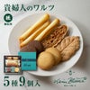 | 内容量 | 5種9個入 ラングロール×3、アーモンドリーフ×1、リーフパイ×1、バターサブレ×2、ココアサブレ×2 |