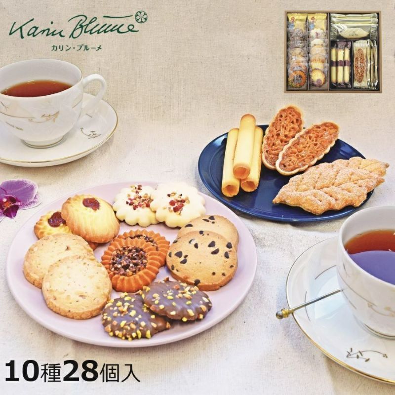 | 内容量 | 10種28個入 アーモンドリーフ×6、ラングロール×5、リーフパイ×3、ホワイトチョコフラワー×2、ミルクチョコフラワー×2、フラワーフロランタン×2、ラズベリージャム×2、ナッツフロランタン×2、チョコチップクッキー×2、ヘーゼルナッツクッキー×2 |